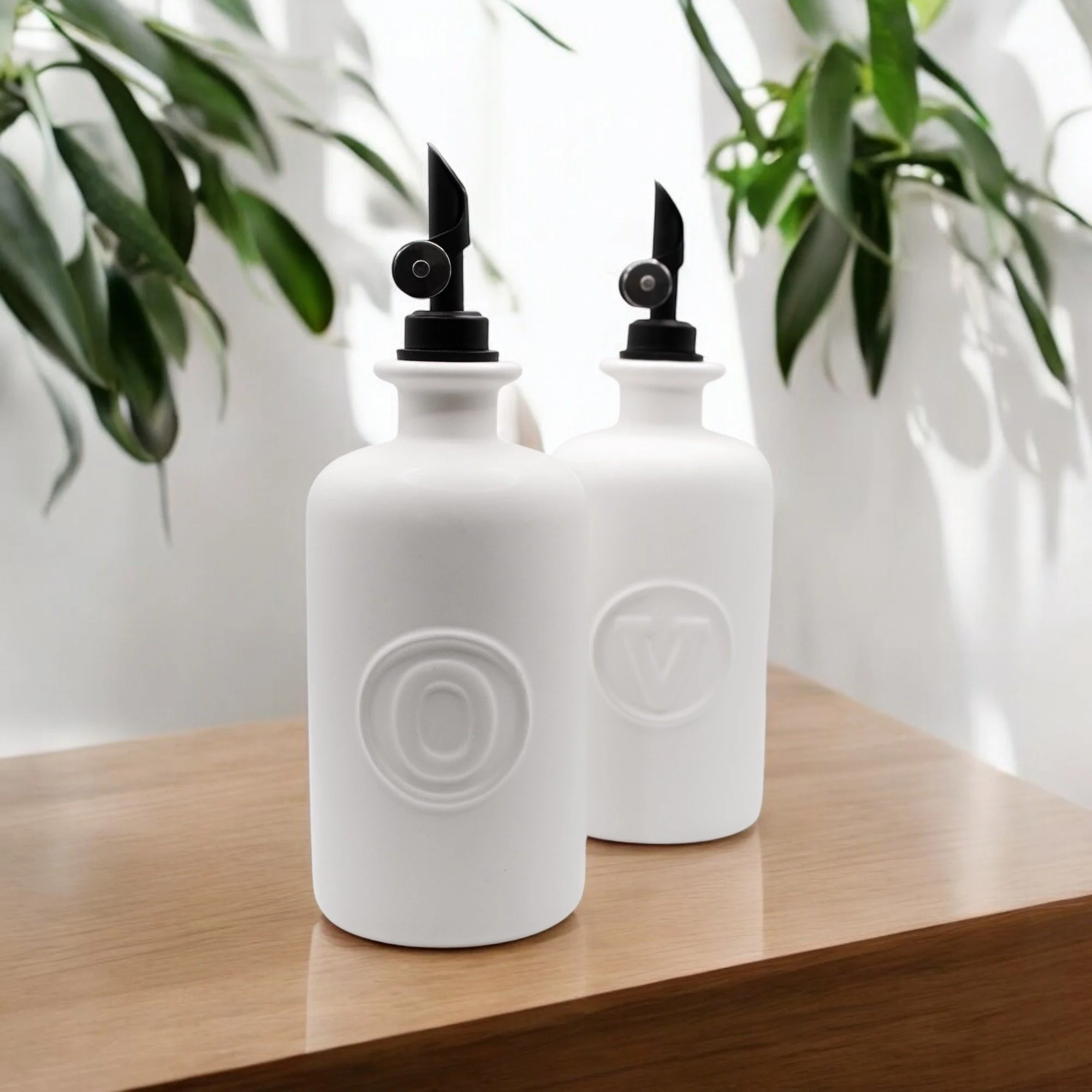 Ajoutez une touche d'élégance à votre cuisine avec notre ensemble de distributeurs d'huile et de vinaigre en céramique de haute qualité.
