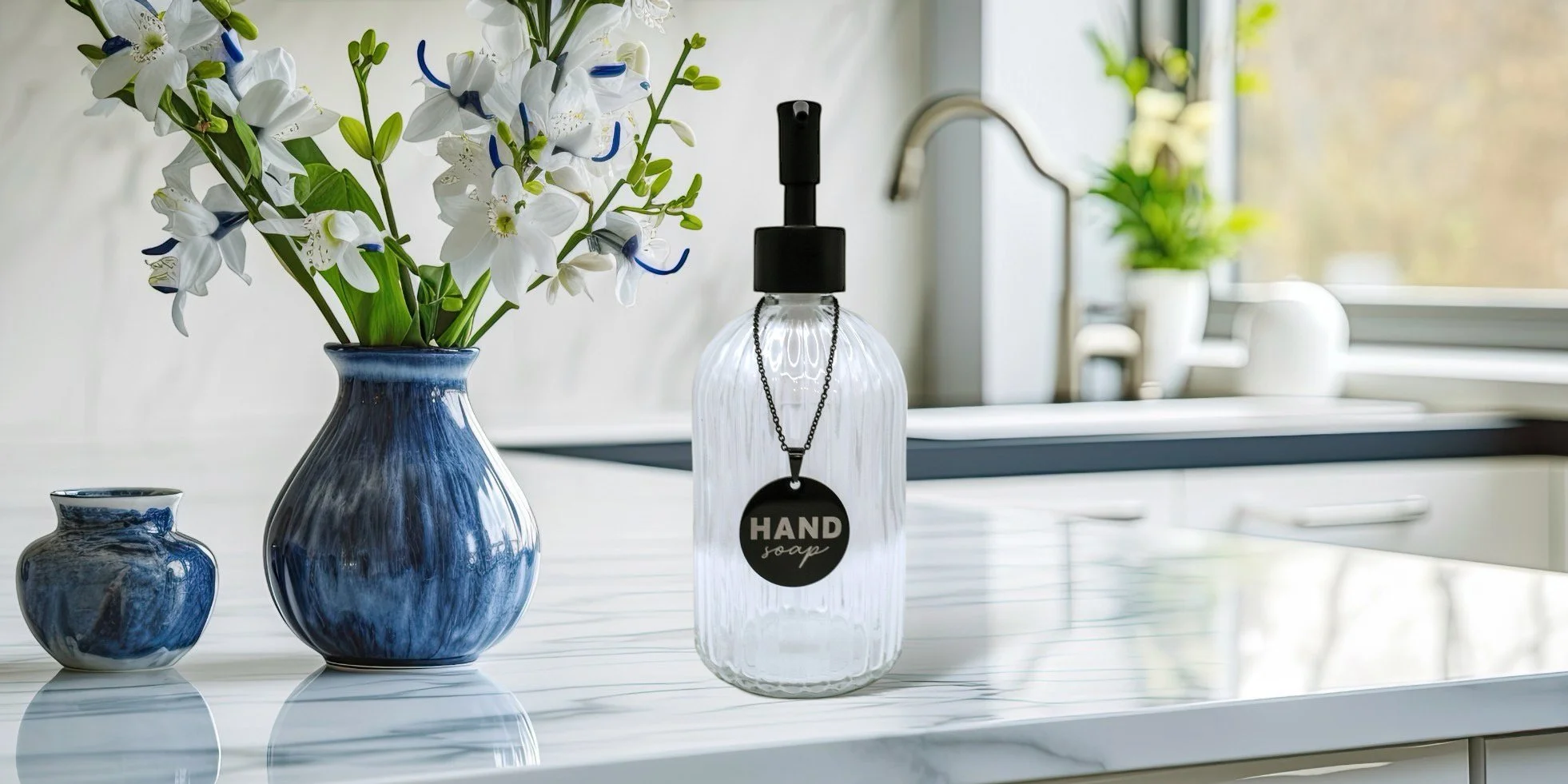 Apportez une touche d'élégance à votre cuisine ou salle de bain avec notre distributeur de savon en verre transparent. Sa pompe en métal noir assure une distribution fluide du savon, tandis que le flacon transparent facilite le remplissage et permet de suivre facilement le niveau de liquide. Avec son élégante étiquette en acier inoxydable « Hand Soap », ce distributeur allie style et praticité pour sublimer et organiser votre espace.