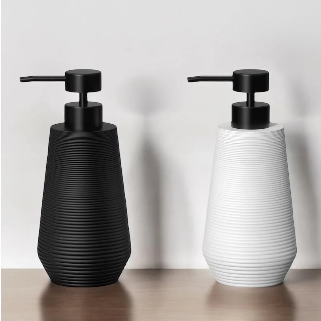 Ajoutez une touche d'élégance à votre cuisine ou salle de bain avec notre ensemble de deux distributeurs de savon en résine. Équipés de pompes en métal noir, ils garantissent une distribution fluide et précise du savon.